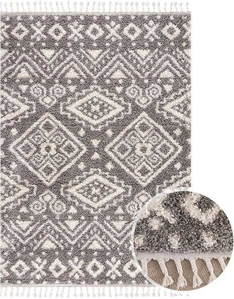Myshop24 Teppich Wohnzimmer Hochflor Grau 80x300cm Schlafzimmer Soft Shaggy Flauschig Mit Fransen Rauten Muster Oeko Tex 100 Standard Allergiker Geeignet Amazon De Kuche Haushalt