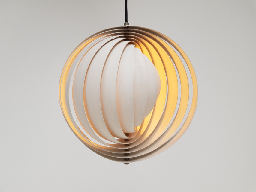 Design Verner Panton, 1964 Mother of pearl discs, metal rings, metal frame Made in Denmark by VerPan ApS Fifty years ago, Verner Panton shook up the world of lighting design with a major launch at the 1964 Cologne Furniture Fair His lamp series "FUN" was like nothing anyone had ever seen before. The Moon Pendant Lamp in white was designed by Danish designer Verner Panton in 1960 When designing the eponymous lunar acted as a model for the Moon Lamp Twelve vertically arranged lamellae form the luminous element and cover with complete fanning the bulb in the heart of the Moon Lamp Unlike the moon, which is illuminated by the sun, the Moon Lamp in white provides itself a pleasant indirect light. Find many great new & used options and get the best deals for MoonLamp Slat Table Lamp Verner Panton Style 70s Space Age Mid Century at the best online prices at eBay!.