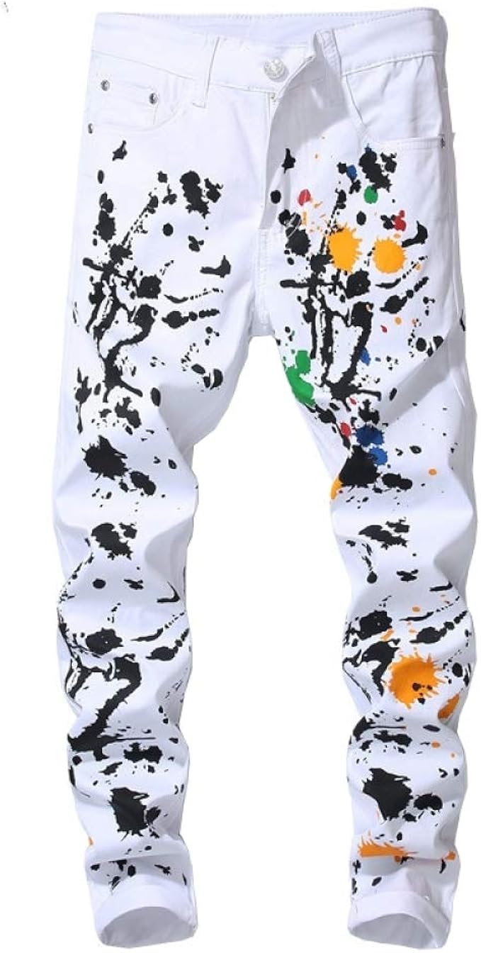 Zouyu Herren Weisse Jeans Mit Panda Print Modisch Bemalte Stretch Jeanshose Hose Hohe Qualitat Amazon De Bekleidung