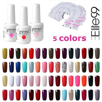 Elite99 Shellac Nagellack Gel Uv Led 5 Farben Mit Top Coat Und Base Coat Shellac Remover Nagellack Fur Nagel Soakoff Fur Manikure Colori Amazon De Beauty