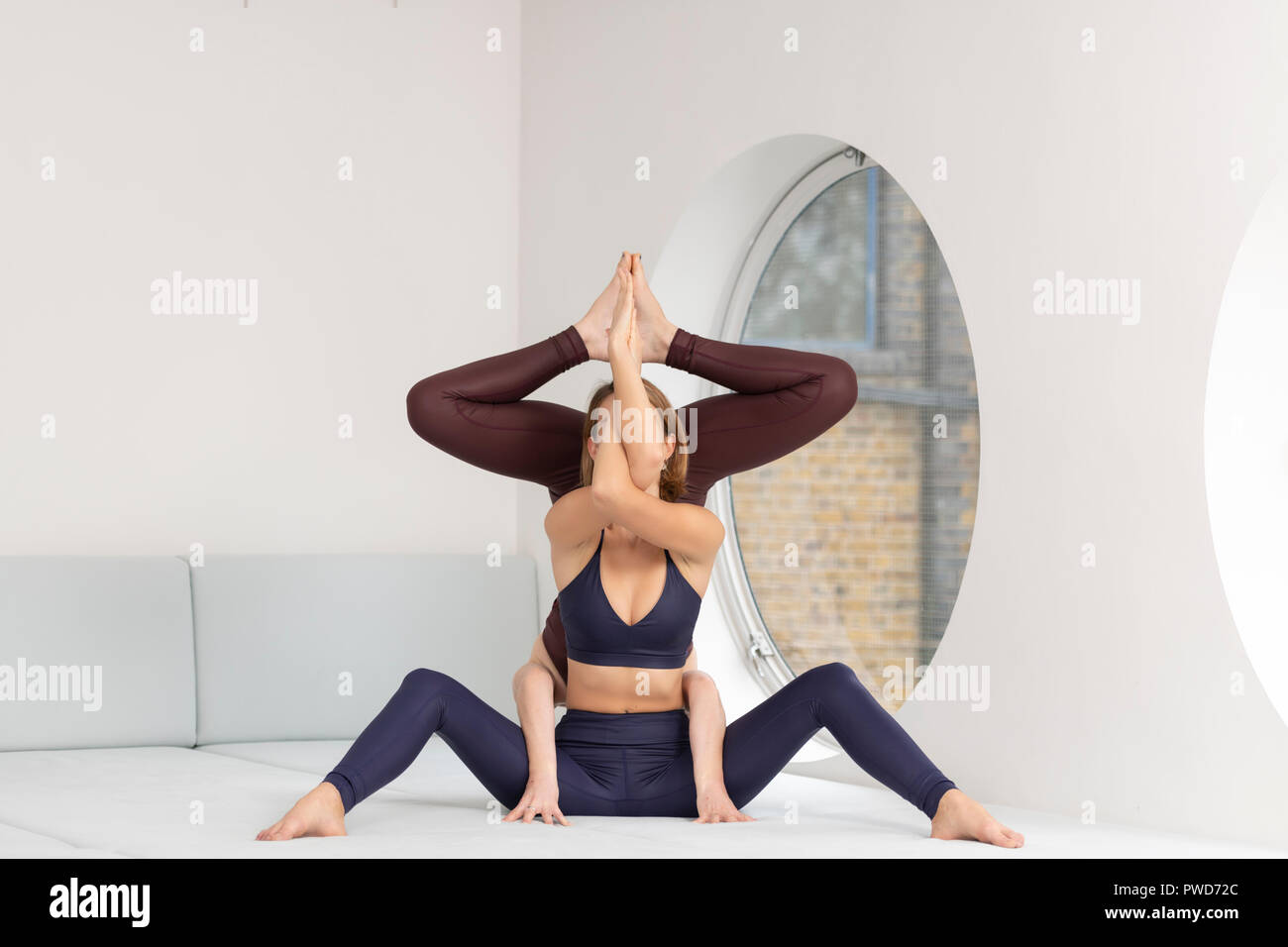 Zwei Frauen Yoga Zusammen Acro Yoga Stockfotografie Alamy