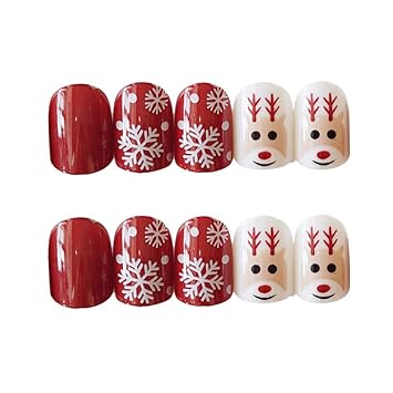 Qulin Kunstliche Nagel Mit Weihnachtlichen Schneeflocken Elch Designs Kunstliche Nagel Fur Neujahr Fake Nail Art Tips Weihnachten Geschenk Dekoration Amazon De Beauty
