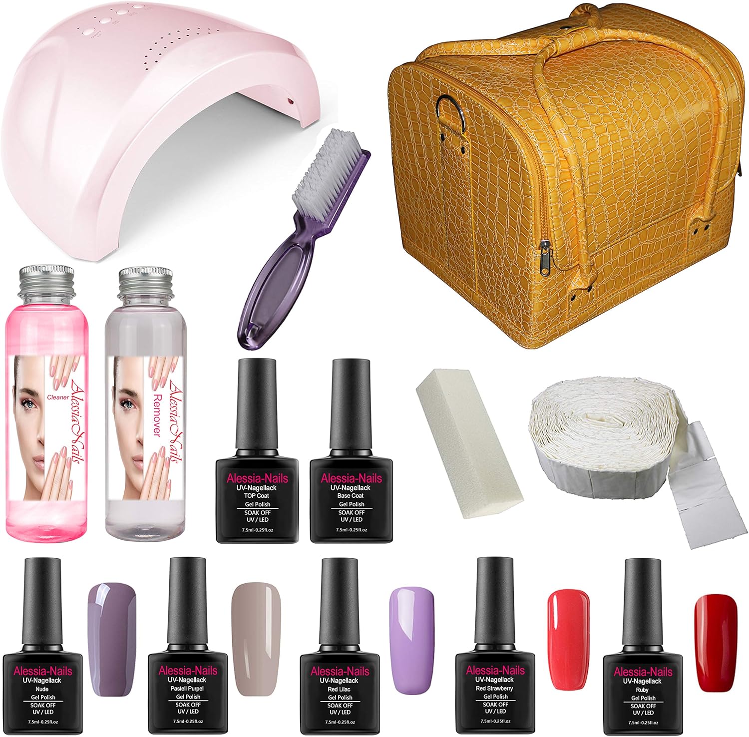 Shellac Set Led Pink With Case Yellow Coloured Uv Gel Nail Base Top Coat Purple Red Uv Gel Nail Art Manicure Salon Amazon Co Uk Beauty