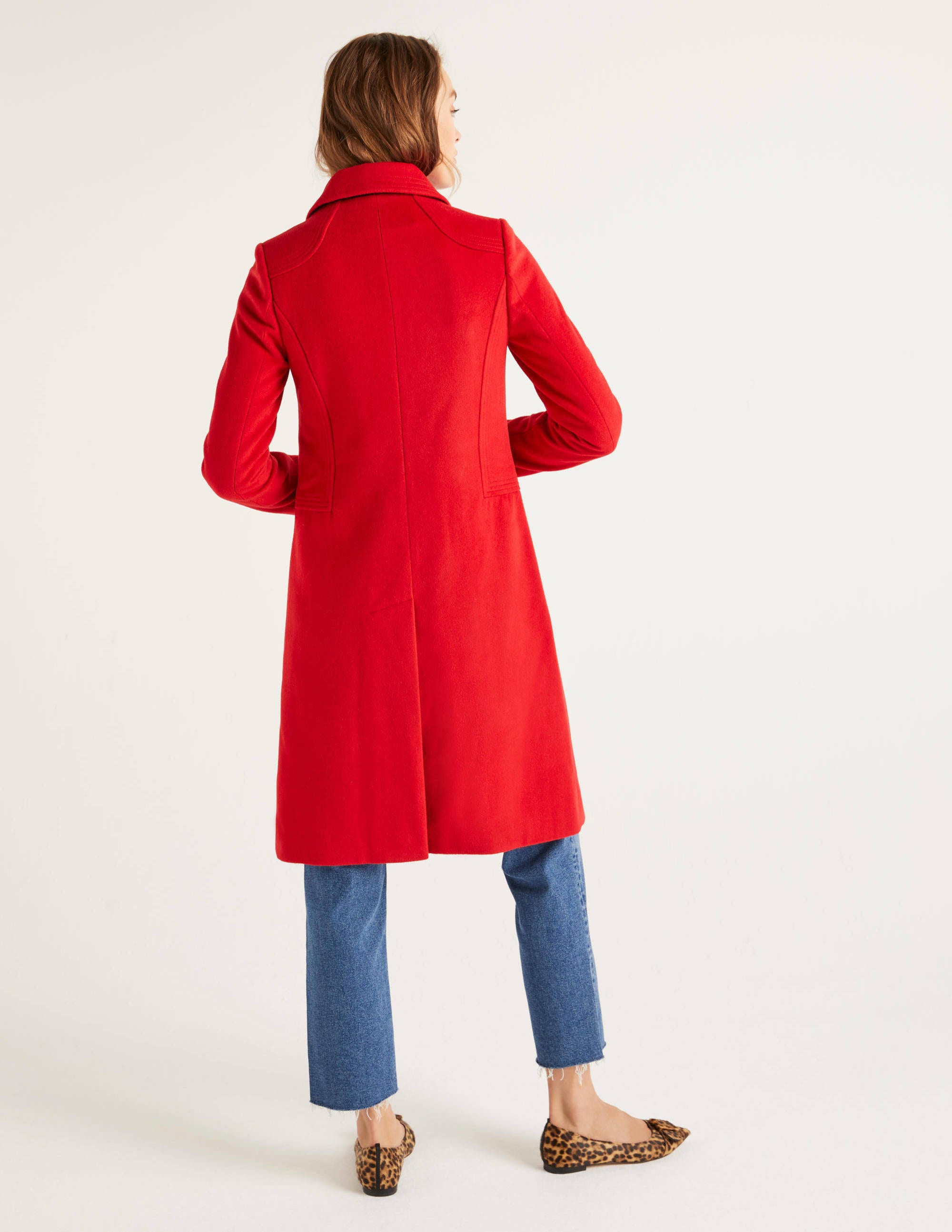 Roter Wollmantel Tailliert