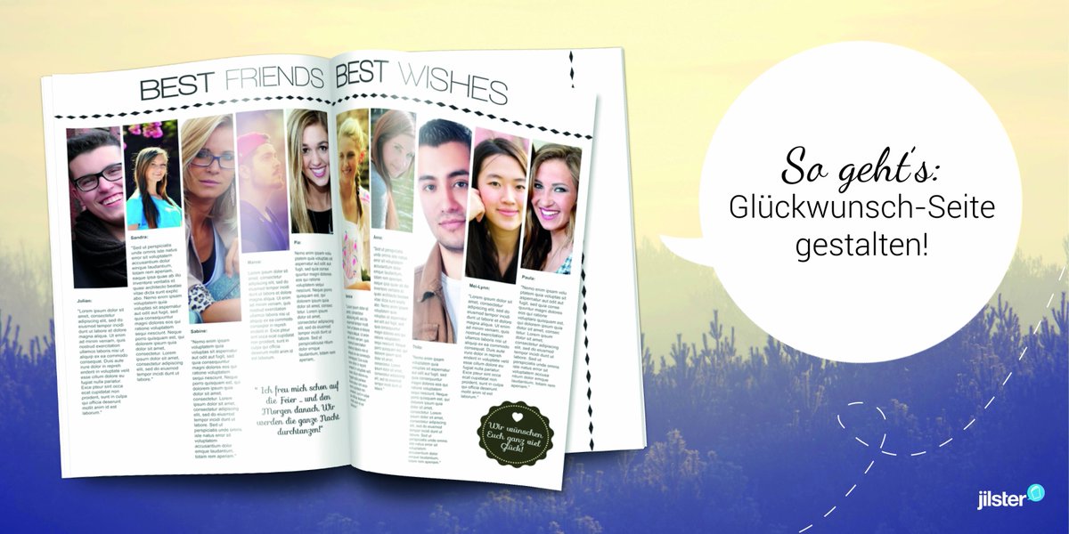 Dafür gestalten Gäste die einzelnen Seiten Manchmal geschieht dies während der Hochzeitsfeier, manchmal sammeln Trauzeugen auch schon Wochen im Voraus Beiträge für Hochzeitsbücher Sind Sie unsicher, was die Gestaltung Ihrer Seite im Buch angeht, lassen Sie sich von einigen Ideen inspirieren Eine Seite mit Herzen gestalten. Kollegen eine ganz besondere Hochzeitszeitung für das Brautpaar!. Eine Glückwunschseite für deine Zeitschrift gestalten Jilster Blog So bringst du Glückwünsche an das Geburtstagskind, das Brautpaar oder den scheidenden Lieblingskollegen stilvoll in deiner Zeitschrift unter #hochzeitszeitung #geburtstagszeitung #abschiedsgeschenk.