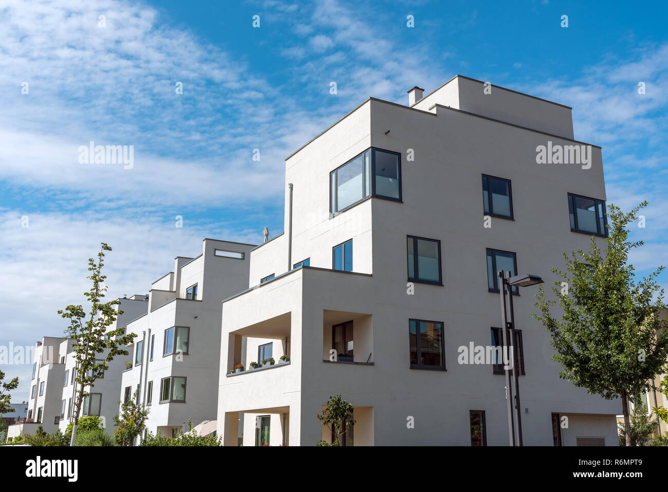 Moderne Weisse Hauser Mit Blauen Himmel In Berlin Gesehen Deutschland Stockfotografie Alamy