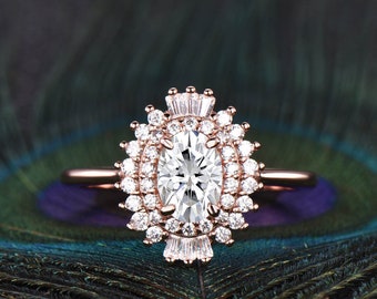 Vintage Verlobungsring Oval Moissanite Verlobungsring Rose Gold Diamond Halo H Vintage Gold Engagement Rings Vintage Engagement Rings Moonstone Engagement Ring