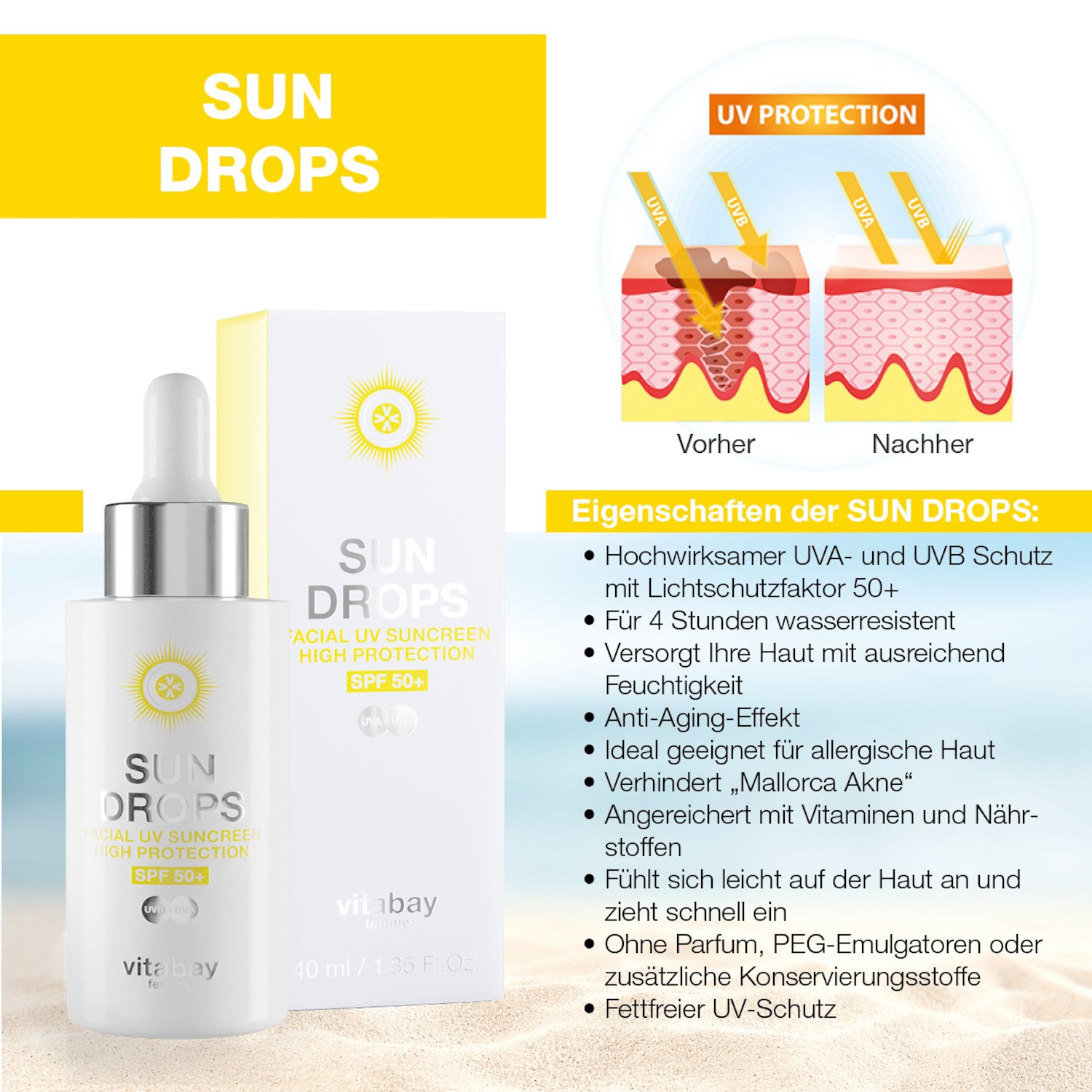 Sun Drops 40 Ml Uv Schutz Fluid Lsf 50 Vitabay