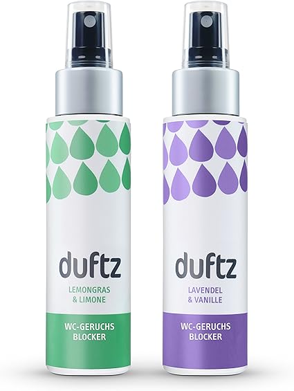 Duftz Bundle 2 Sorten Wc Geruchsblocker Fur Den Toilettengang Mindestens 0 Anwendungen 2 X 75ml Lavendel Vanille Und Zitronengras Limone Toilettenparfum Fur Unterwegs Die Toilette Badezimmer Gaste Wc Amazon De Drogerie