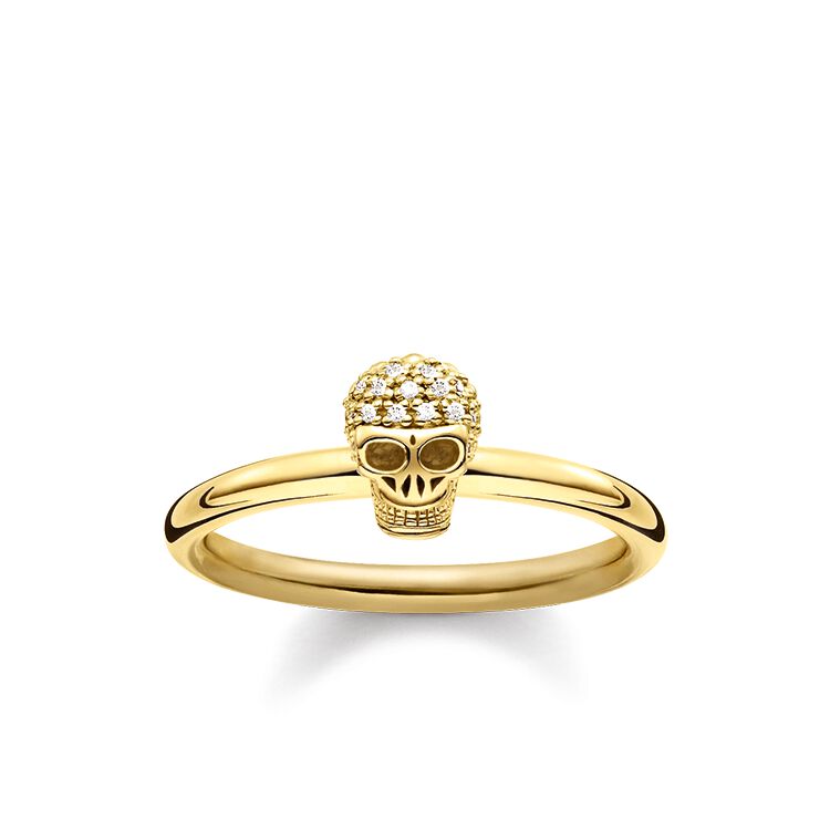 Thomas Sabo Rebel At Heart Gold Plated Diamond Skull Ring D Tr0030 924 39 T H Baker Family Jewellers