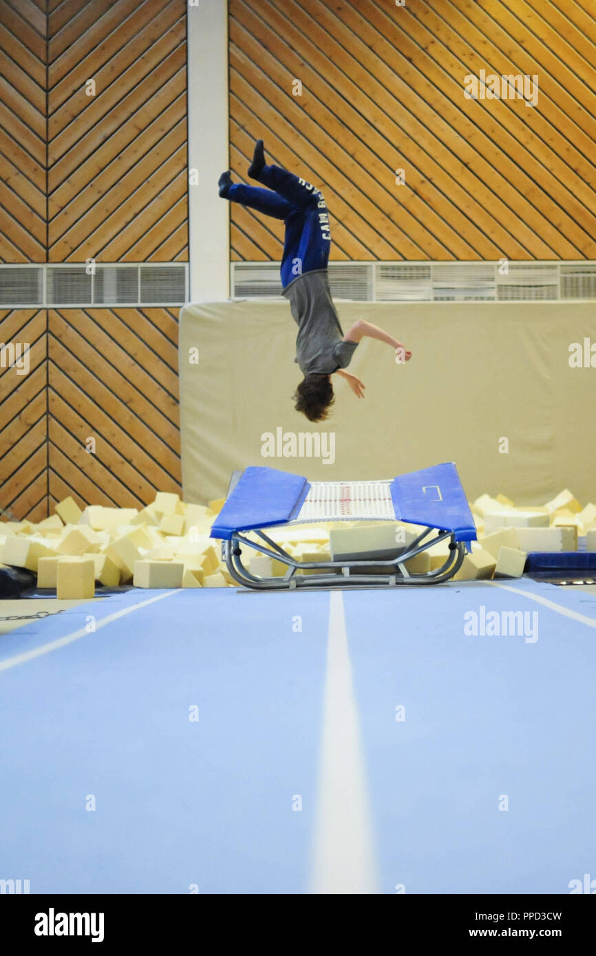 Open Trampoline Training In The Sportschule Trampolin Trampoline Sports School Here Train The Trampoline Professionals Of Daniel Millet In The Hall Of The Regional Training Center Of The Bavarian Gymnastics Federation In