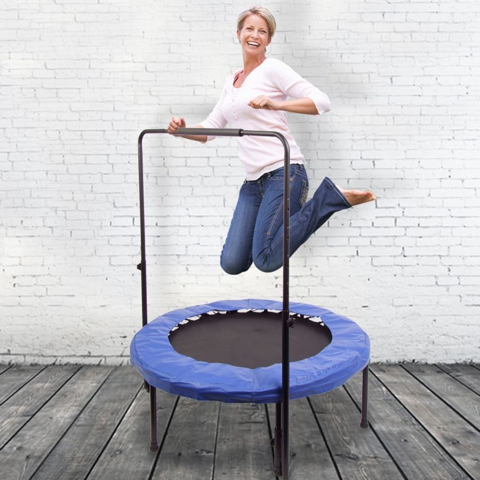 Jumping on a rebounder or minitrampoline is a great form of lowimpact cardio Getty Images Working out inside with little space and equipment can feel really frustrating and limited. ANCHEER Rebounder Trampoline 38/40 Inch for Adults and Kids, Foldable Mini Fitness Rebounder Trampoline with Safety Pad for Indoor Garden Workout Cardio Training Max Load 2lbs 43 out of 5 stars 430 $7599 $ 75 99 15% coupon applied at checkout Save 15% with coupon (some sizes/colors). All you need is a trampoline and an old wakeboard rope and handle to get started If you don’t have access to a trampoline, there are plenty of trampoline gyms that you can find locally after a little bit of Web research Dowdy says, “The best setup I’ve been to was in Toronto, where the Canadian Olympic gymnastic team trains.