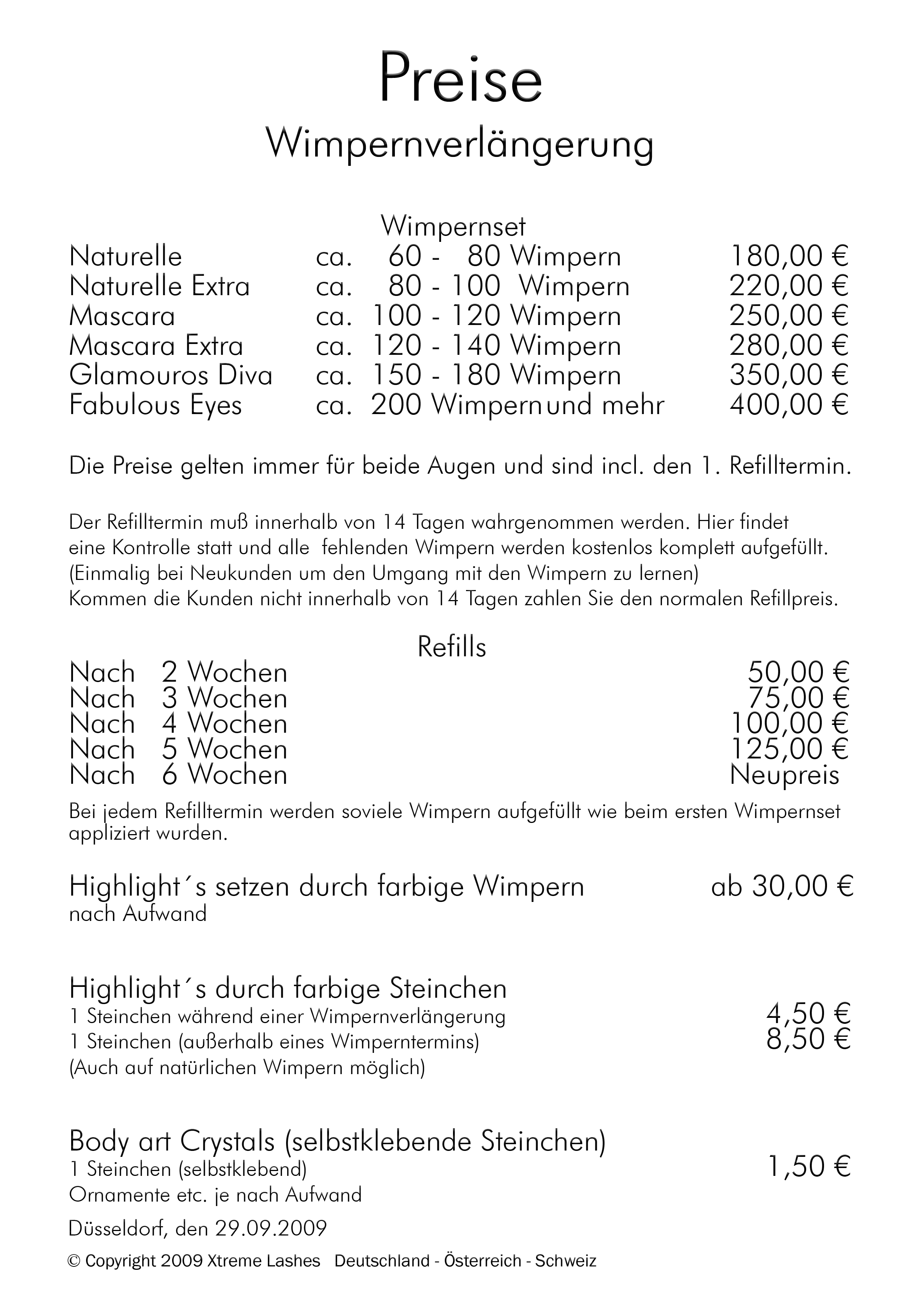 Wimpernverlängerung 127, Preisliste Stand 2402 · Alle Preise inkl MwSt Durch Veröffentlichung dieser Preisliste werden alle vorhergehenden Preise ungültig COCONAILSPA DÜSSELDORF Berliner Allee 56 D Düsseldorf Fon 0211 E. Nur 665 € statt 950 € 19% MwSt Das Angebot gilt nur für Düsseldorf. Liste der beliebtesten Wimpernverlängerung in Bilk, Düsseldorf;.
