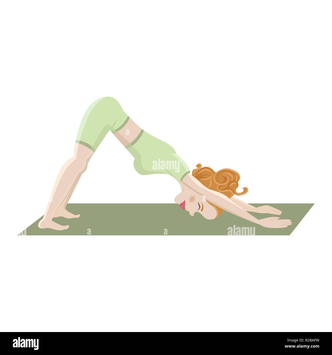 Frau In Yoga Pose Stehen Auf Der Matte Stock Vektorgrafik Alamy