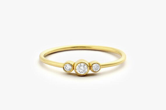 Drei Stein Diamant Verlobungsring 14 K Gold Drei Stein Runde Etsy