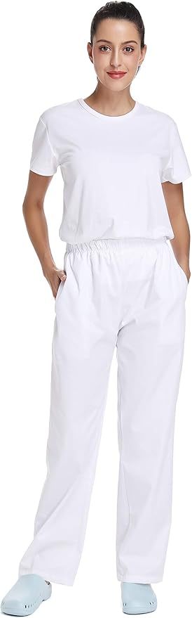 Wwoo Damen Op Hose Weisse Schlupfhose Uniformen Hose Bundhose Aus Baumwolle Mit Gummibund Professionelle Materialien Amazon De Bekleidung